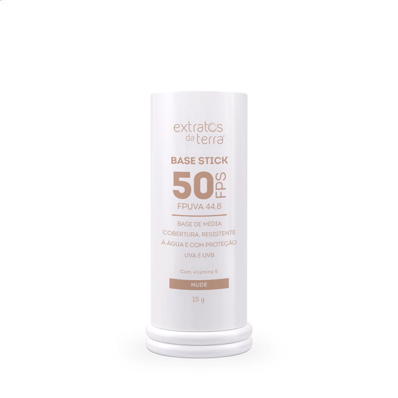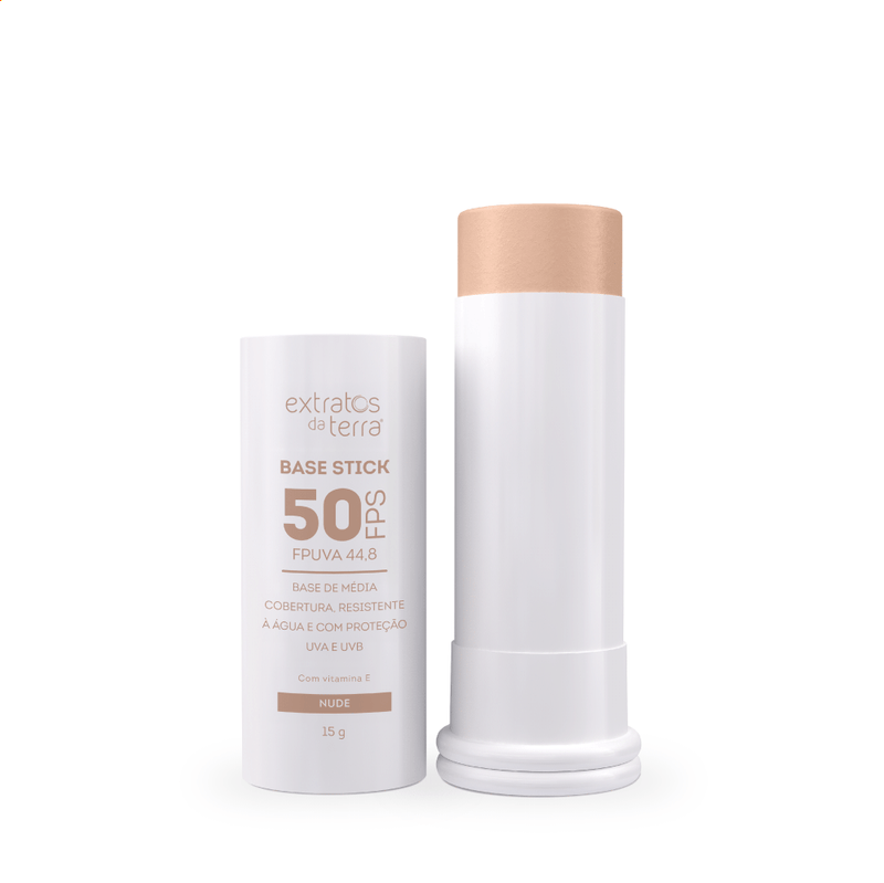 Essa base em bastão se adapta a diferentes tons de pele, o Stick FPS 50 Nude é uma base tonalizante de cobertura média e toque seco. É uma base multifuncional com proteção UVA e UVB. Disfarça imperfeições da pele e espinhas, auxilia a prevenir o envelhecimento precoce. Indicada para todos os tipos de pele e resistente à água, é ideal para uso no dia a dia ou durante a prática de esportes.