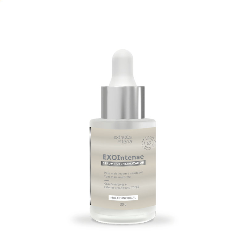EXOIntense é um sérum com exossomos que potencializa tratamentos anti-idade, clareadores, antiacne, antiestrias e pós-operatórios, promovendo a regeneração celular, melhorando a comunicação entre as células e revertendo os danos na pele.