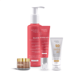 O Sabonete Facial Gluco+ prepara a pele sem ressecar e já começa a renovar delicadamente. O Reverse Creme Anti-idade age nas rugas e na firmeza, estimulando o colágeno e deixando o contorno facial mais definido. A Máscara Regenerativa PDRN EXO-C reforça a reparação profunda, restaura o DNA celular e mantém a pele em modo de recuperação contínua, garantindo viço e suavidade mesmo horas depois da aplicação. Para finalizar, o Protetor Solar Hyaluronic FPS 50 protege contra o sol enquanto hidrata e uniformiza, mantendo o tratamento seguro ao longo do dia.