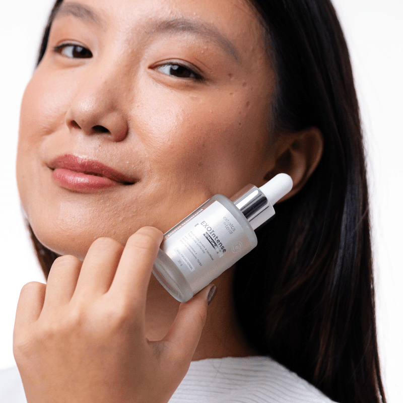 O grande diferencial desse kit é o EXOIntense, um sérum com exossomos e fatores de crescimento que acelera a regeneração da pele, melhora a hidratação, fortalece a barreira cutânea e potencializa a ação do alfa arbutin. Sua ação reforça a comunicação entre as células, promovendo uma pele mais uniforme, iluminada e com textura visivelmente mais saudável.