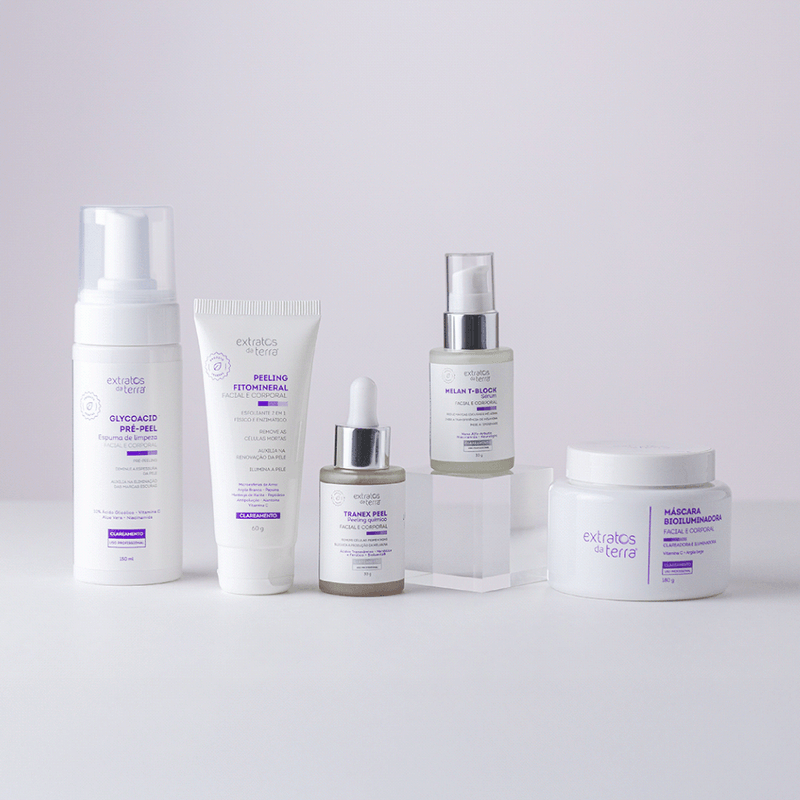 Tratamento profissional completo para clarear manchas escuras e melasma de forma segura e eficaz. Este kit une ativos consagrados no clareamento da pele com a tecnologia avançada dos exossomos, oferecendo resultados visíveis desde as primeiras aplicações.