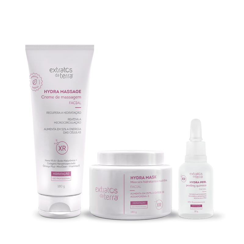 Os produtos profissionais Hydra Peel, Hydra Massage e Hydra Mask foram desenvolvidos para a recuperação e a reconstrução não só da hidratação, mas também da saúde da pele. Para isso, os produtos agem em 5 frentes principais: