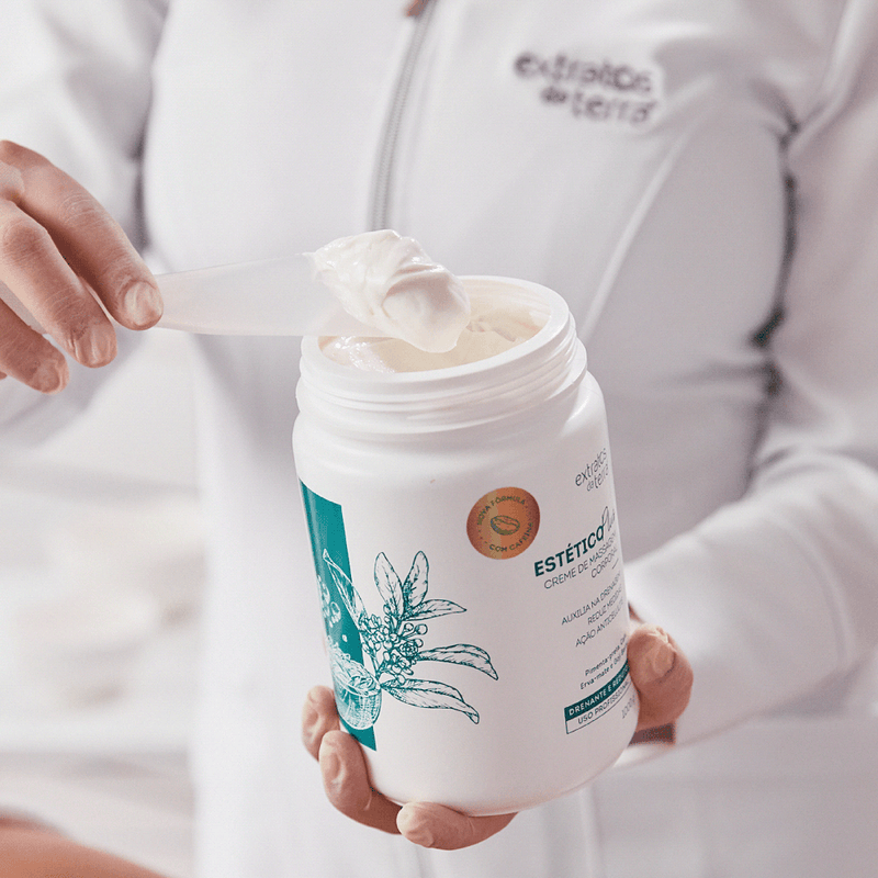 O que vem no kit: Peeling Estimulante de Café e Nozes - 300 g Estético Plus Creme de Massagem - 1000 g Fluido Firmador Corporal - 500 g
