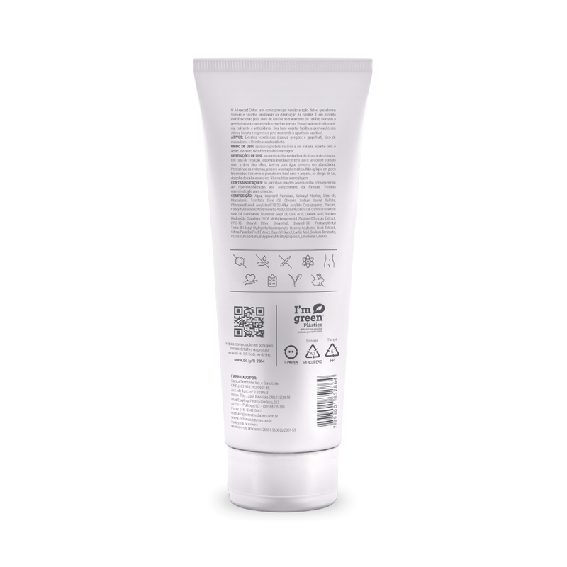 O Advanced Detox tem como principal função a ação detox, eliminando toxinas e líquidos. É um produto multifuncional, pois também é eficaz no tratamento da celulite.