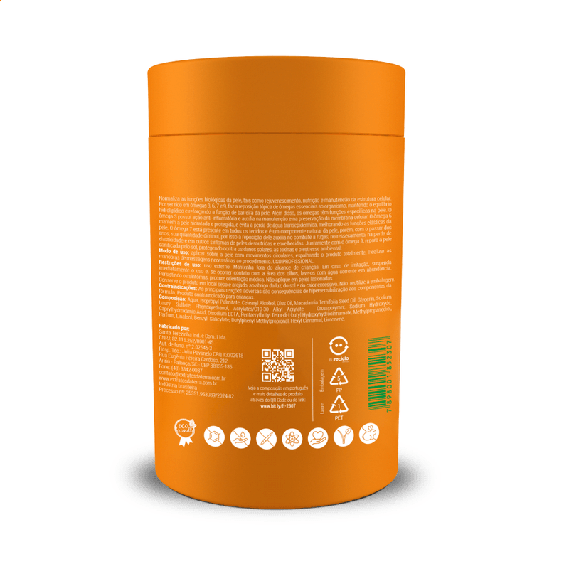 Creme de massagem nutritivo e altamente hidratante, indicado para prevenir e tratar o ressecamento de peles desnutridas e envelhecidas. Tem ação anti-inflamatória, aumenta a elasticidade e repõe topicamente os ômegas 3, 6, 7 e 9.
