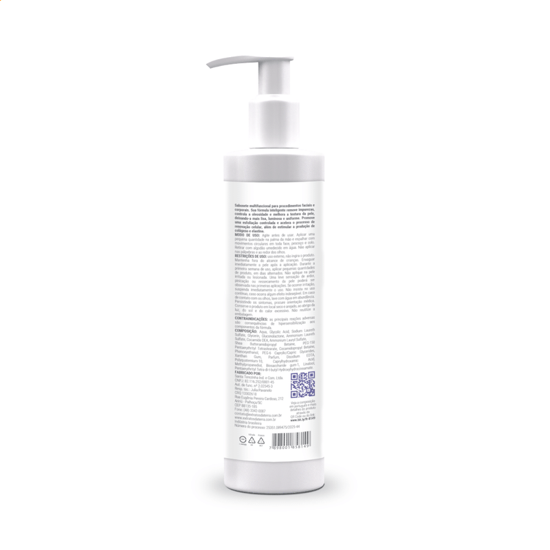 Indicado para peles oleosas, acneicas, espessas ou desvitalizadas, o sabonete pode ser usado antes de diversos procedimentos faciais e corporais, como microagulhamento, eletroterapias, peelings, revitalização e protocolos antiacne ou antiestrias.