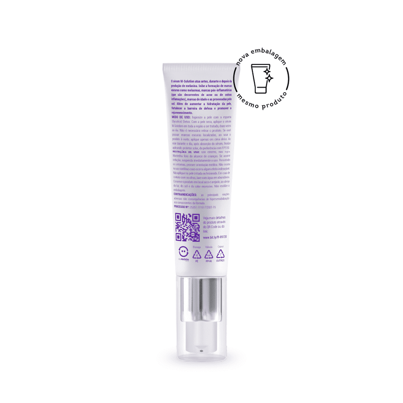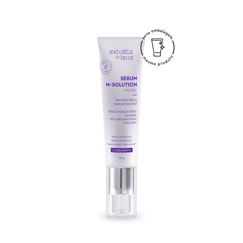 O sérum clareador M-Solution é um dermocosmético especialmente formulado para atuar antes, durante e depois da produção de melanina, pigmento que forma as manchas na pele. Este sérum é capaz de agir em diferentes mecanismos de formação das marcas escuras, proporcionando uma ação completa, desde a camada mais superficial até a mais profunda da pele. Além disso, age intensamente na hidratação e no fortalecimento da barreira de defesa contra agentes externos.